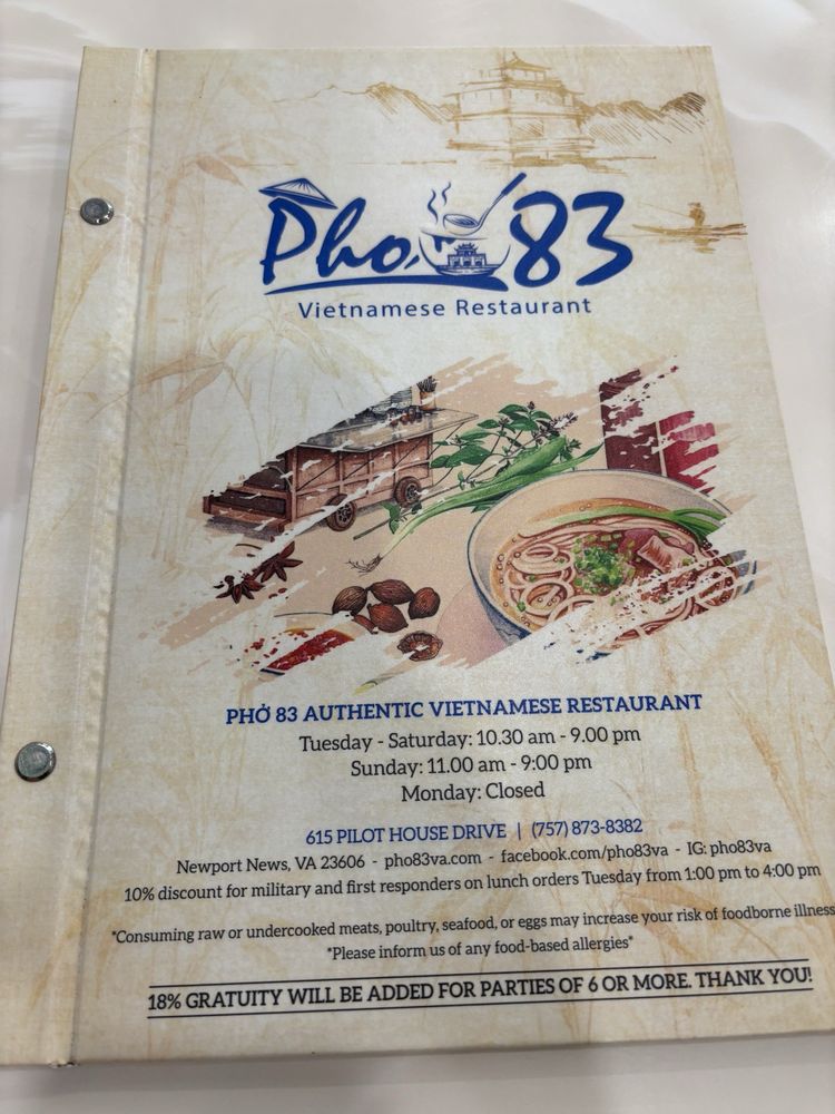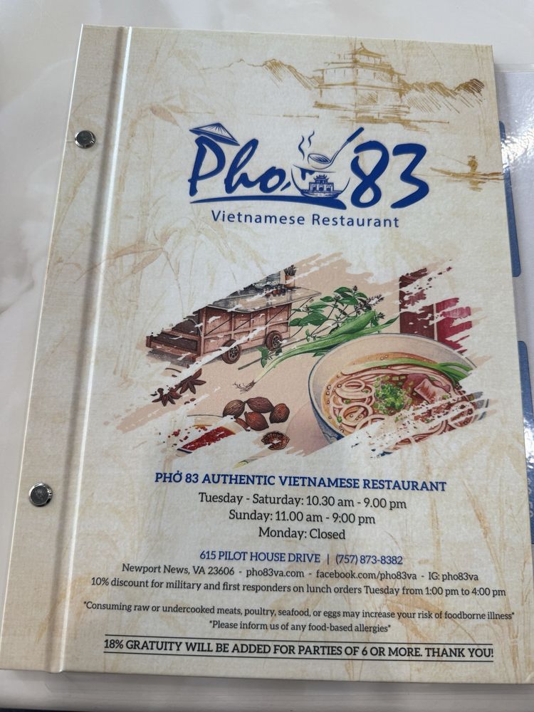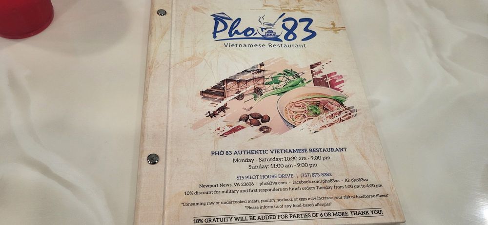 Pho 83 in Newport News, VA is a Vietnamese restaurant known for its delicious pho and flavorful dishes. With options for soup and sandwiches, this casual spot offers vegan and vegetarian options, and accepts various payment methods including cryptocurrency. Customers rave about the attentive service and generous portions, making it a great spot for lunch or dinner. The menu features traditional Vietnamese dishes like bun Bo hue and banh mi, as well as fresh spring rolls and vermicelli salad bowls. The standout dish is the pho, with perfectly balanced broth and fresh ingredients. The restaurant is clean, with fresh produce, and offers outdoor seating for those looking to dine al fresco. Overall, Pho 83 is a must-visit spot for authentic Vietnamese cuisine in Newport News.
