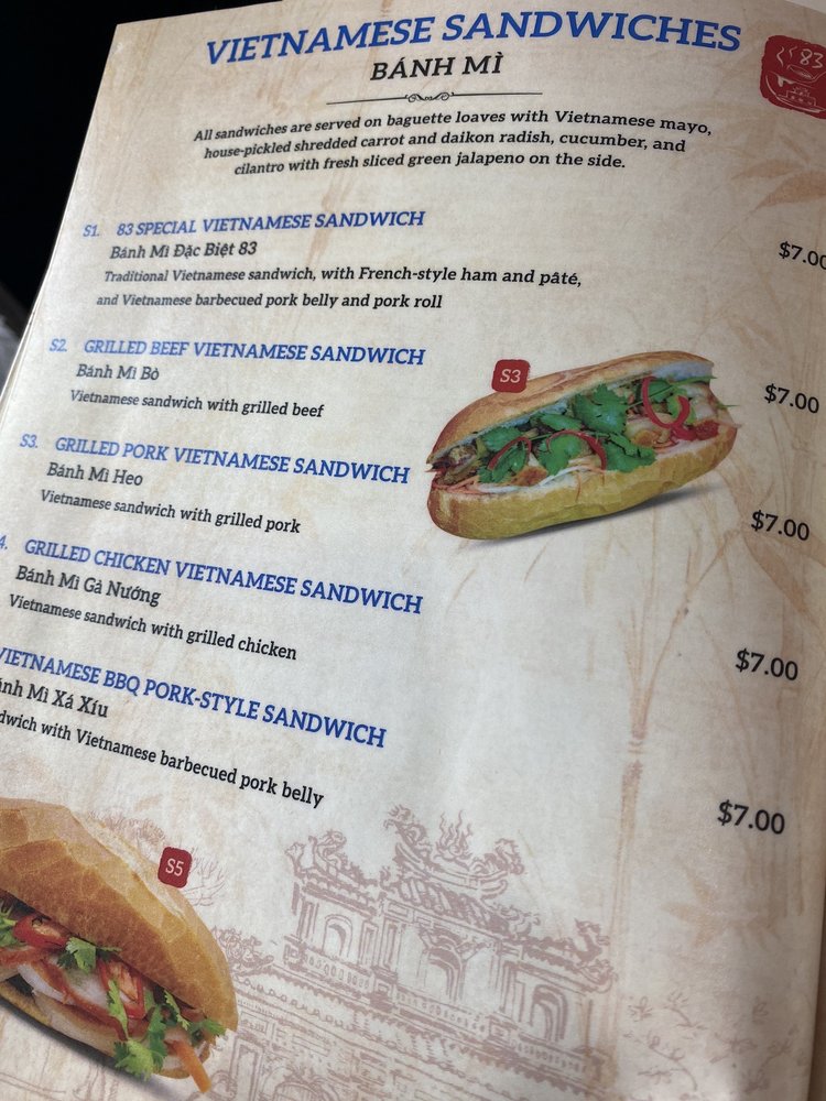 Traditional Vietnamese sandwich, with French-style ham and pate, and pork roll.